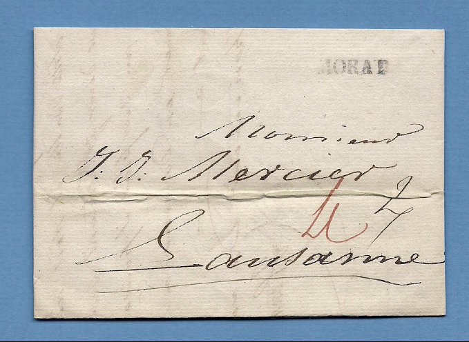 Porto-Bf. mit 4 Kreuzer taxiert. Brief von Henriette SCHMID, an die Firma MERCIER in Lausanne. Winkler Nr. 2581/7
