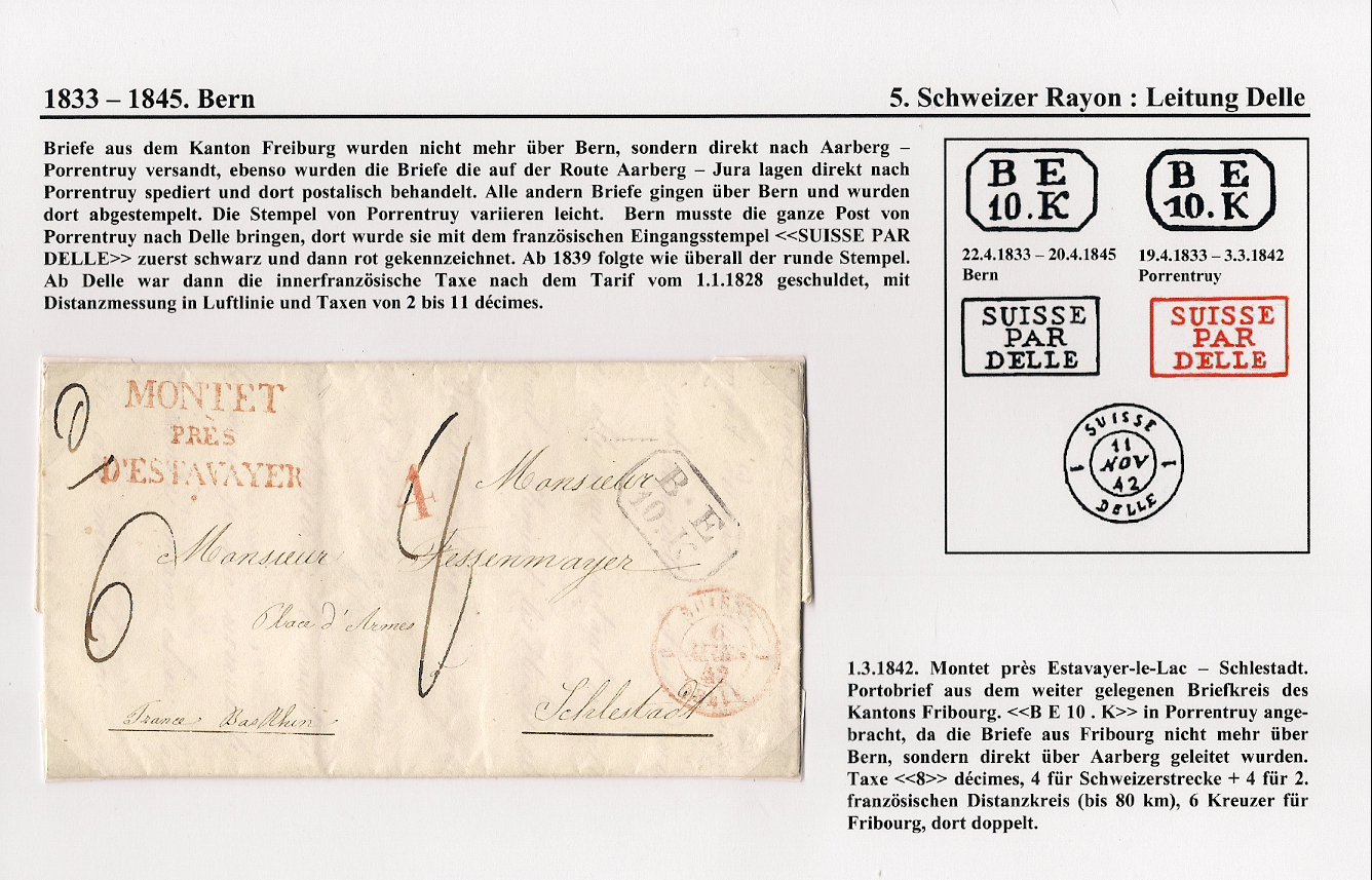 Brief an FESSENMAYER. (K2) SUISSE /1 DELLE 1 + (Ra2) B E / 10.K (Bern 10 Kreuzer). Taxstempel. Pres Estavayer.