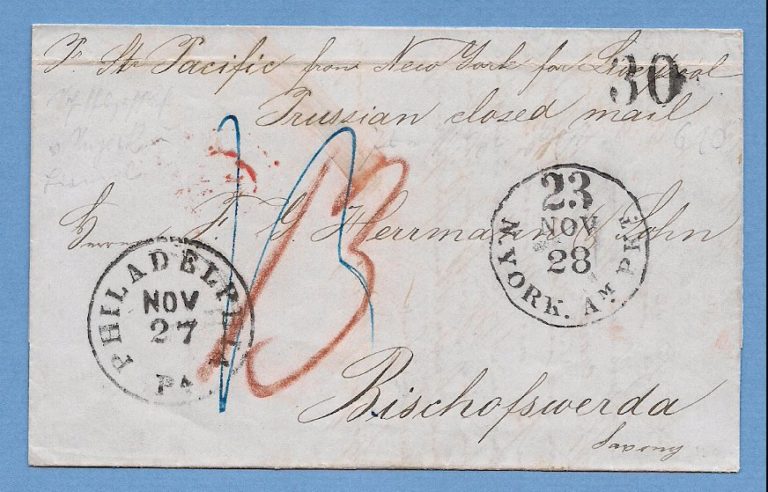 Brief an die Firma Herrmann und Sohn – Transitpost – Schiffspost – Taxstempel – Oberlausitz