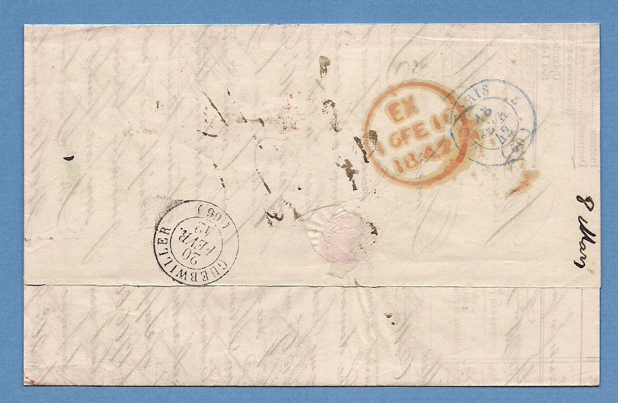 24.1.1842 – Charleston (South Carolina) => London => Calais => Guebwiller (Frankreich) PACKET LETTER
