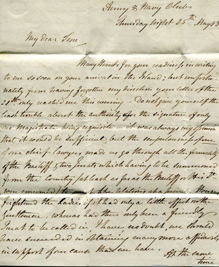 25.5.1843 – Army & Navy Club thursday night => Guernsey (Paid Ship Letter London)